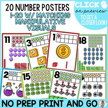 Bring your math wall to life with these Gaming Math Number Posters an easy way to reinforce number sense while tying into the themes your students love most. With five representations per number and bold, visual consistency across all 20 posters, this printable pack saves time and supports learning every day.