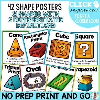 ⛳This resource includes 42 pages of 2D and 3D shape posters, each offered in two formats: