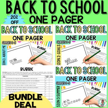3rd 4th 5th Grade Back to School One Pager Bundle Deal Activities Printables