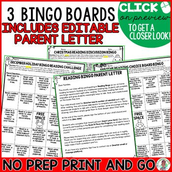 3rd 4th 5th Grade Christmas Reading Bingo Boards December Holiday Nightly Log