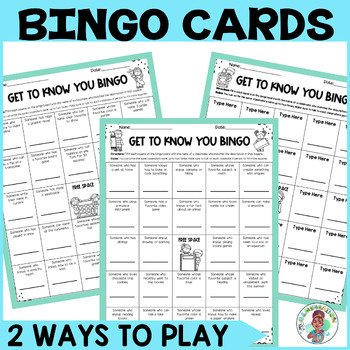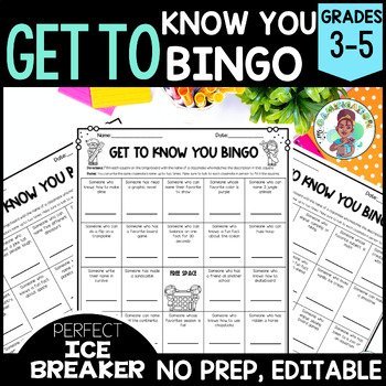 3rd 4th 5th Grade Get to Know You Bingo Cards Editable Ice Breaker Activity Game