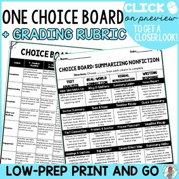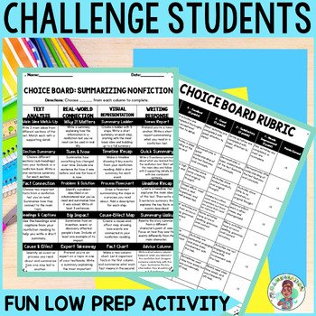 - Summarizing Nonfiction Choice Board with 20 Activities