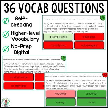 Are your fourth and fifth graders stuck on vague worksheets trying to figure out vocabulary meaning? This digital 4 in a row holiday context clues game brings 36 test‑style, text‑rich questions to your students in a lively, competitive format that demands critical thinking and decision‑making.