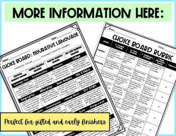 4th 5th Grade Year Round Choice Board Figurative Language Activity Worksheet