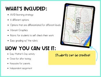 Celebrate Mother’s Day with this differentiated AVID-inspired one-pager activity for 3rd, 4th, and 5th grade! Students reflect and create a heartfelt keepsake while practicing writing and organization skills. Perfect for busy teachers, this no-prep resource includes multiple templates to fit all learners. A meaningful Mother’s Day project parents will love!