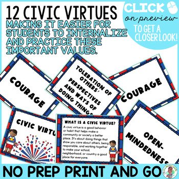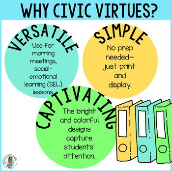 ✅1 Full Page Size Poster explaining what a civic virtue is.
